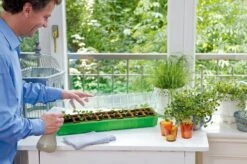 - Die Töpfe bis ca. 0,5 cm unter den Rand mit Anzuchterde füllen. Danach werden je nach Pflanzenart ein oder mehrere Samen auf die Substratoberfläche gestreut und mit etwas Substrat abgedeckt.
