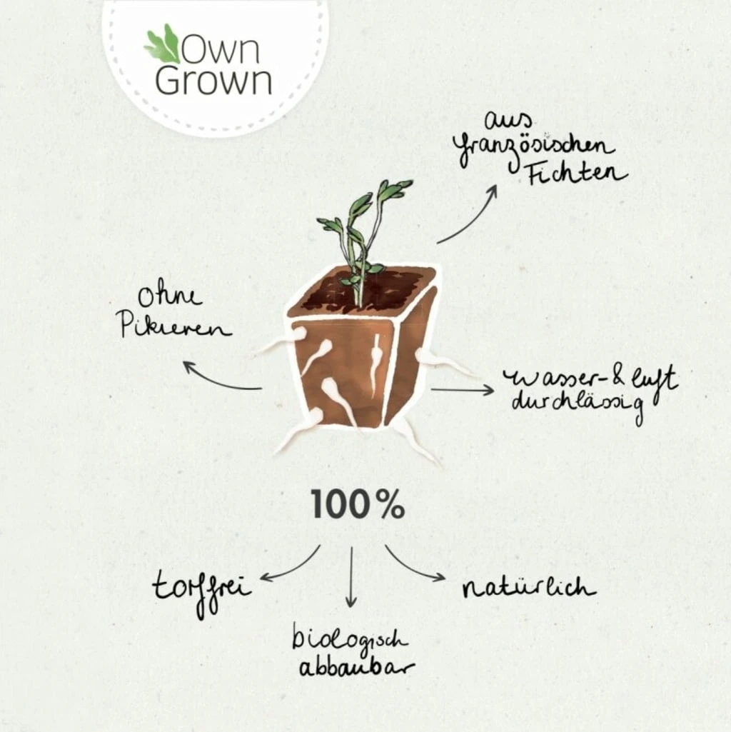 Mit den abbaubaren Pflanztöpfen wird dir dir Arbeit um einiges erleichtert. Die kleinen Gefäße sind von den Wurzeln leicht zu durchbrechen, sodass du dir das spätere Pikieren ersparst. Auch kannst du sie ganz einfach in die Erde setzen, da sie sich innerhalb weniger Wochen zur Gänze abbauen.