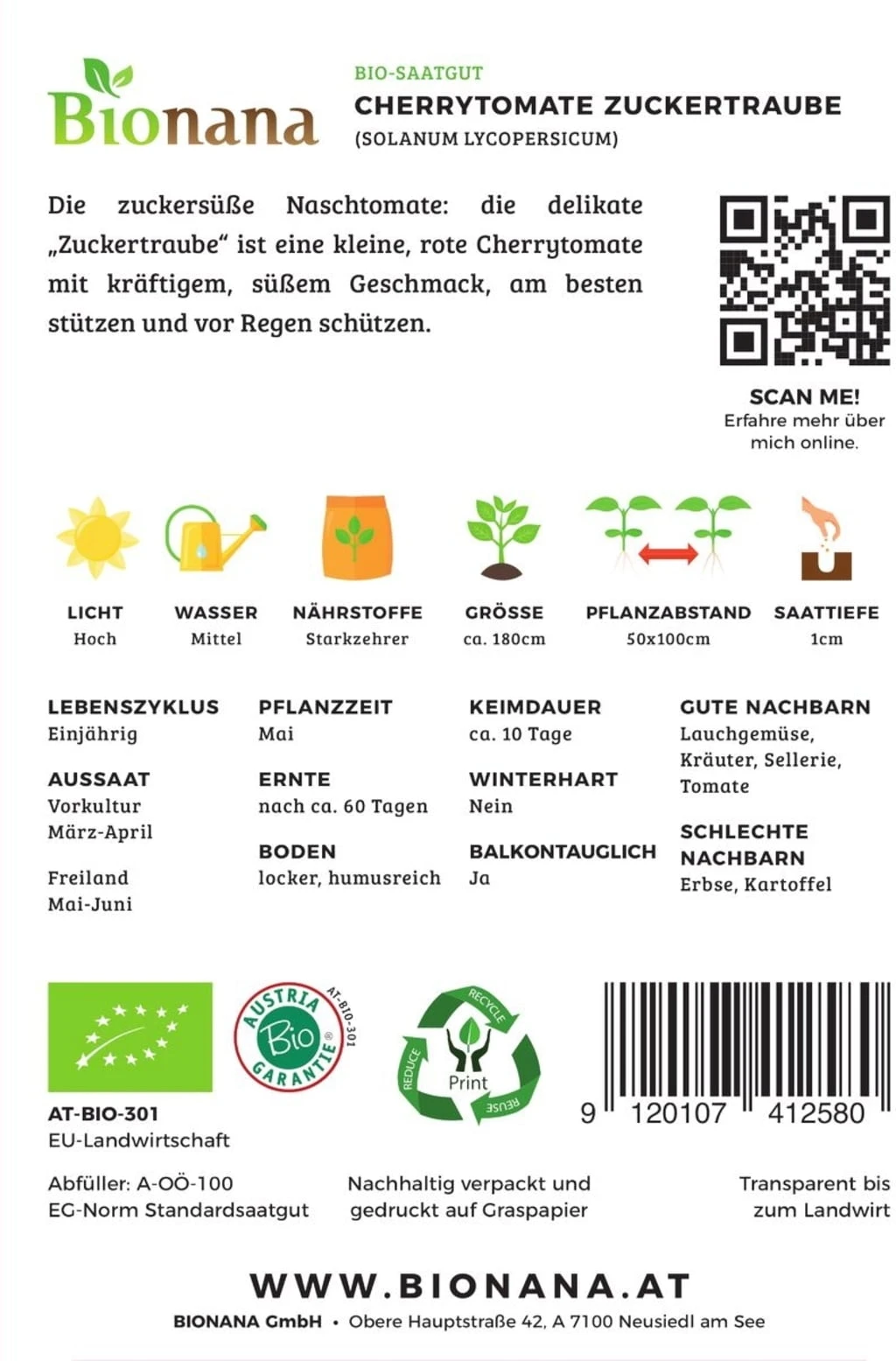 Mit ihrem zuckersüßen Geschmack ist diese Cherrytomate perfekt zum Naschen. Sie bildet lange Rispen mit zahlreichen Früchten und wird früh reif. Dieser knallroten Versuchung können Groß und Klein nicht widerstehen.