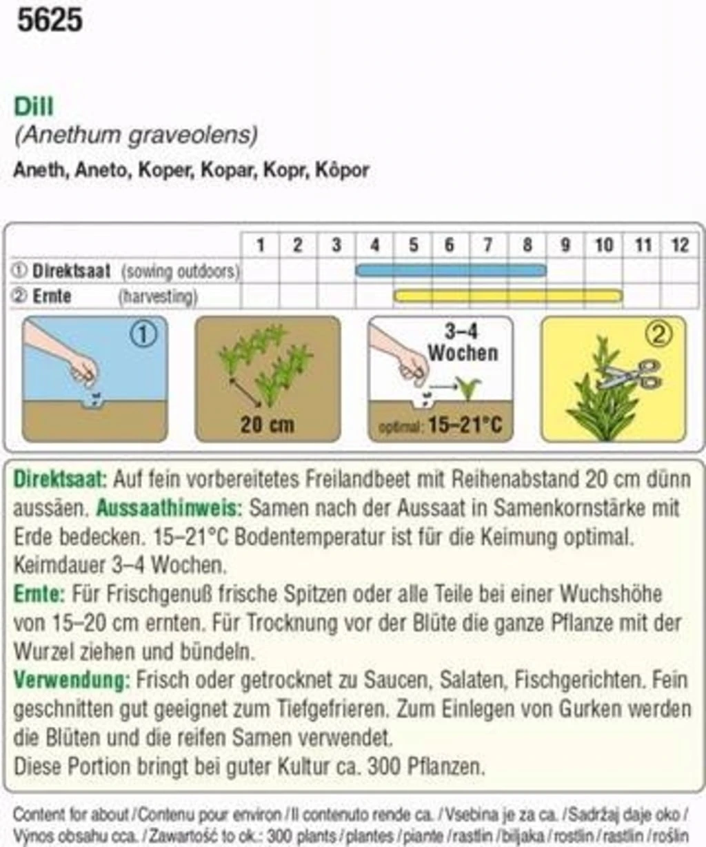 | Aussaattermin: | April, Mai, Juni, Juli, August |