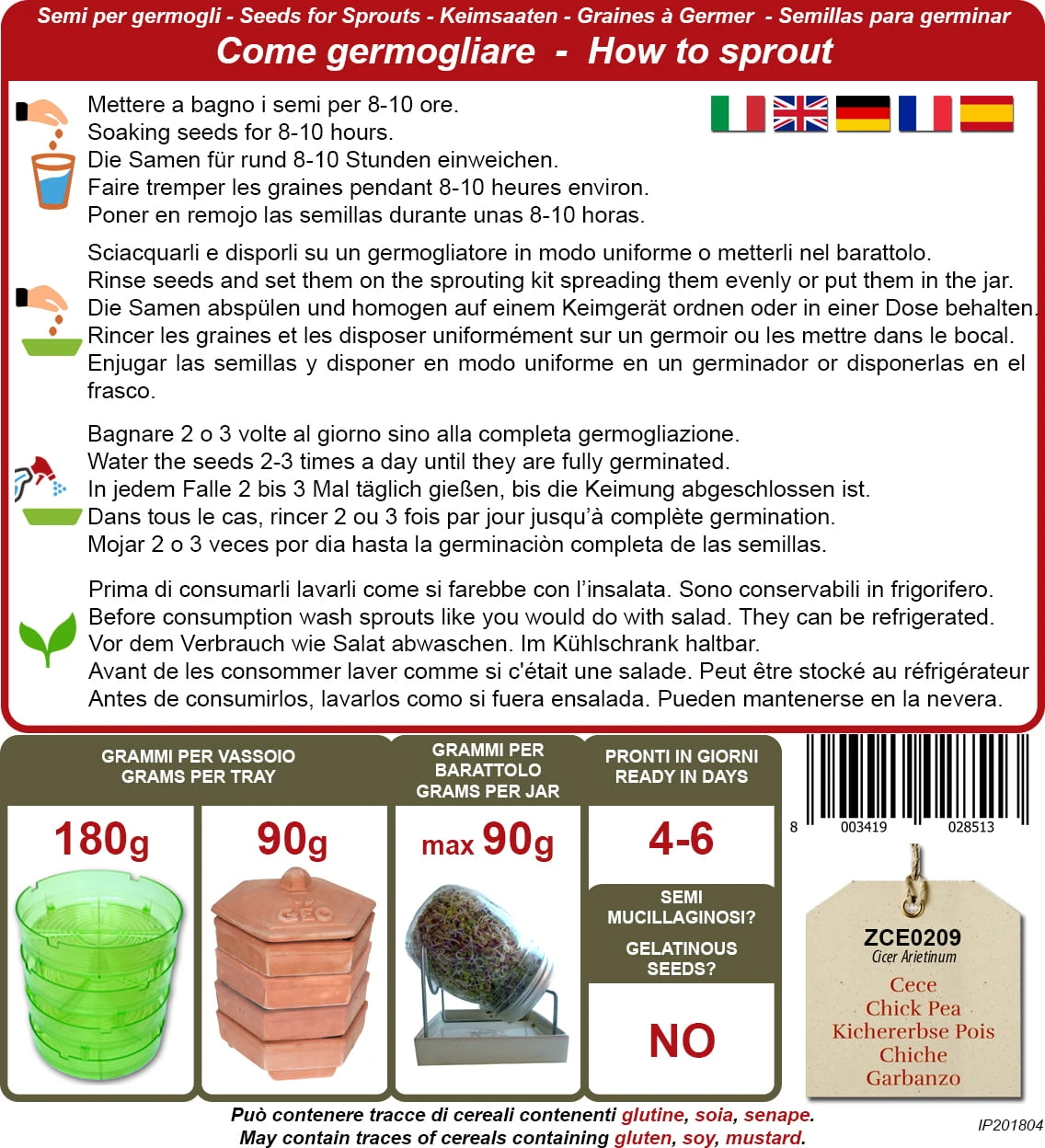 Kichererbsen sind ein wichtiges Nahrungsmittel in der indischen und orientalischen Küche. Die Sprossen sollten vor dem Verzehr gekocht oder geröstet werden (10-15 Minuten) und eignen sich unter anderem hervorragend für Couscous-Gerichte.