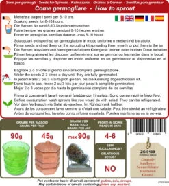 Die Keimsprossen „Sonnenblumen“ verfügen über einen sehr hohen Proteingehalt und können pur, roh oder geröstet geknabbert werden. Sie können ganz einfach das ganze Jahr über zu Hause selber gezogen werden und sind innerhalb vier bis sechs Tage essfertig.