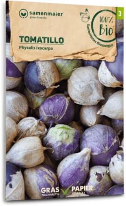 Dieses typisch mexikanische Gemüse ist die traditionelle Grundlage für zahlreiche mit Chili und Koriander gewürzte Gerichte. Die Früchte ähneln Tomaten, sind jedoch in Lampions eingehüllt und fallen zu Boden, wenn sie reif sind.