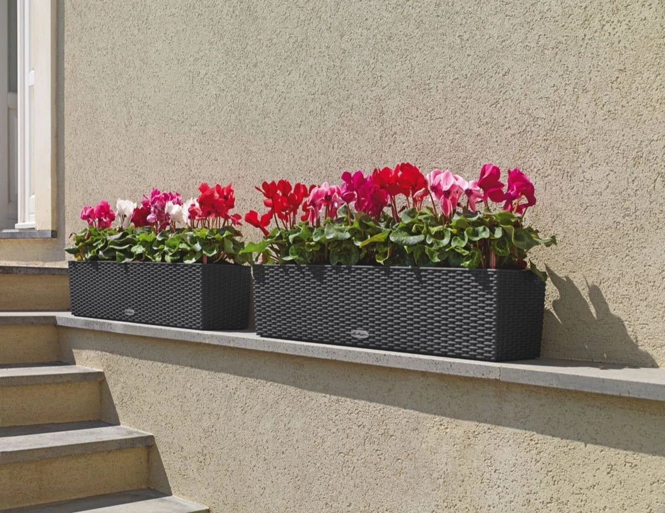 Der Balkonkasten BALCONERA von LECHUZA lässt auch bei größter Hitze die Pflanzen nicht hängen. Dank der großen Wasserreservoirs (5 Liter) erhalten sie ausreichend Flüssigkeit. Ganz einfach die Pflanzeinsätze auf dem Boden oder Tisch bepflanzen und danach in den Balkonkasten setzen. Außerdem überzeugt der Balconera Cottage 80 durch sein ansprechendes Design (reddot design award winner 2010).