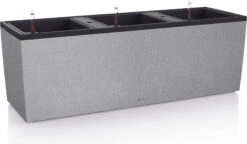 Das elegante Pflanzgefäß TRIO Stone 40 begeistert sowohl mit seinem zeitlosen Design in attraktiver Steinoptik als auch mit seinem cleveren Innenleben. Drei wechselbare Pflanzeinsätze inkl. patentiertem Bewässerungssystem machen ihn zur perfekten Wahl für das Kultivieren von Obst- und Gemüsepflanzen sowie dekorativer Blütenpracht. Ideal für Gärten, Terrassen oder größere Balkone – als halbhoher Sichtschutz, Mini-Beet oder Blumenkasten.