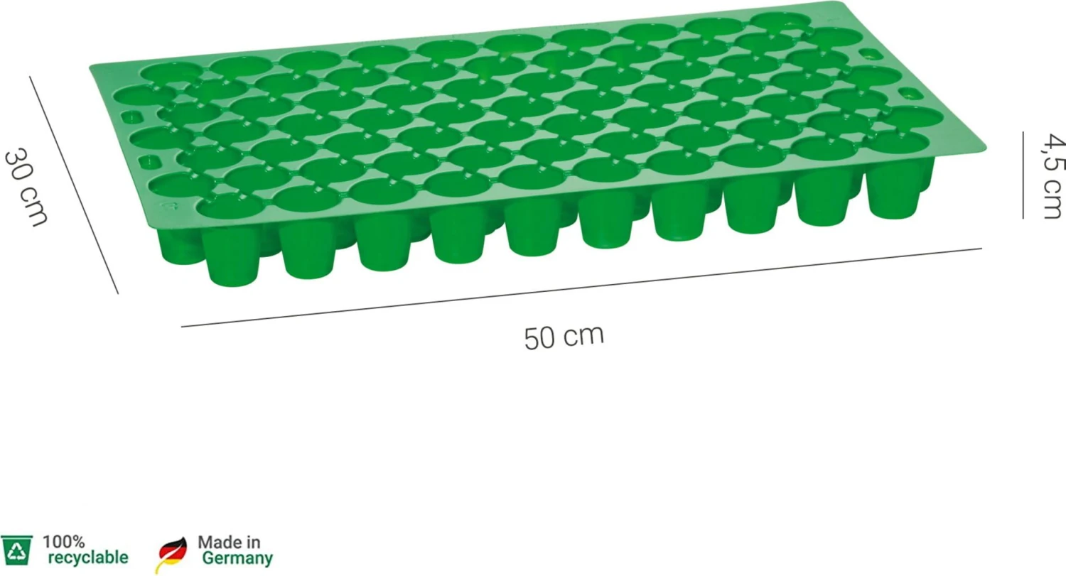 In dieser praktischen Multitopf-Platte finden 73 Anzuchttöpfe Platz.