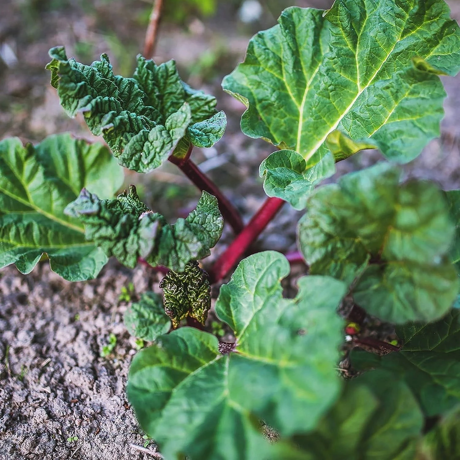 Rhabarber liefert über Jahre hinweg saftige Stangen, die sich wunderbar für die Zubereitung von Kuchen, Kompott und Marmelade eignen. Obwohl Rhabarber meistens für Süßspeisen verwendet wird, gehört es botanisch gesehen dennoch zum Gemüse.