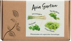 Diese wunderbare Geschenkbox „Asia-Garten“ eignet sich hervorragend als Geschenk an liebe Freunde die Freude an der Anzucht und an frischen Kräutern haben. Denn das eigene Anzüchten von asiatischen Kräutern und Gemüsen macht Spaß und das Ergebnis schmeckt lecker. Egal ob in Nudeln, in Salaten oder auf dem Spieß – die Kräuter aus dem eigenen Garten – runden den Geschmack perfekt ab. Du kannst sie auch auf der Fensterbank züchten, so sind sie schnell griffbereit für eine herzhafte Mahlzeit.