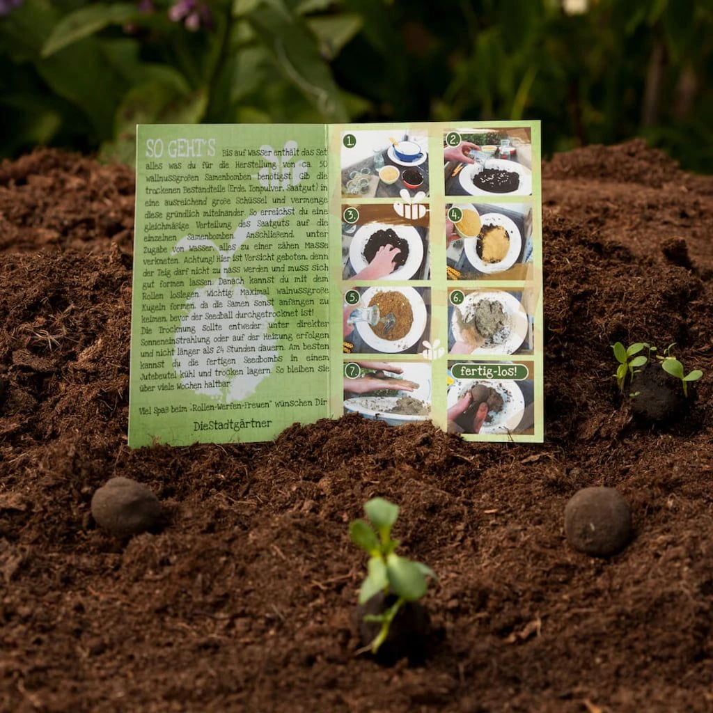 Samenbomben bringen Farbe und Leben in graue Umgebungen und gehören zur Grundausstattung des Guerilla Gardenings. Noch mehr Freude mache die kleinen Kugeln, wenn du sie selbst bastelst. Dieser tolle Samenbomben-Bausatz enthält alles, was du benötigst, um bis zu 50 eigene Samenbomben zu bauen. Ob alleine oder zusammen mit Freunden, dieser Bausatz macht einfach immer Spaß.