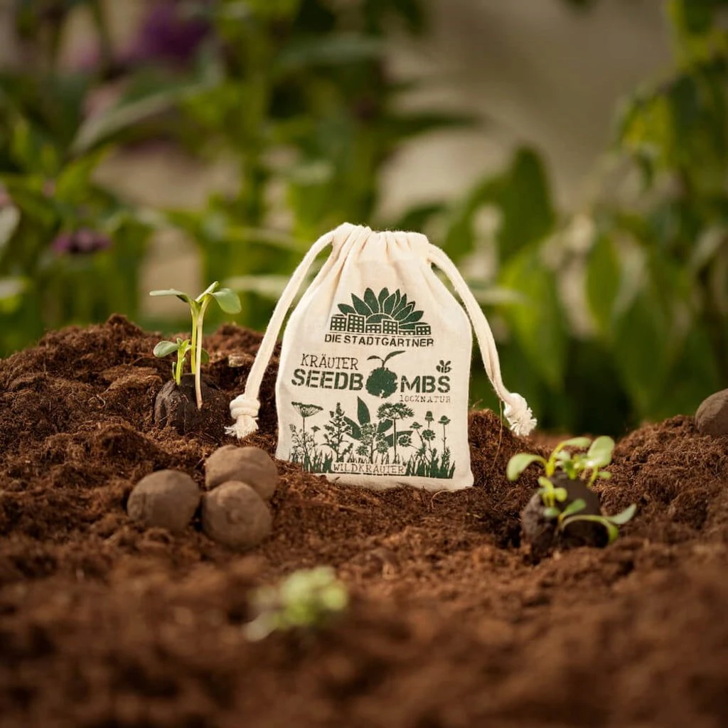 Die Samenbomben müssen nicht eingepflanzt werden, sondern können direkt oder per Wurf an der gewünschten Stelle ausgebracht werden. Der Mix aus Ton und Humus verhindert, dass die Samen austrocknen oder durch Regen weggeschwemmt werden.