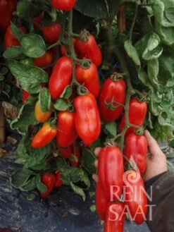 Klassische italienische Saucentomate. Die länglich flaschenförmigen Früchte eignen sich hervorragend für die Verarbeitung. Sie besitzen ein ausgewogenes Säure-Zucker-Verhältnis.