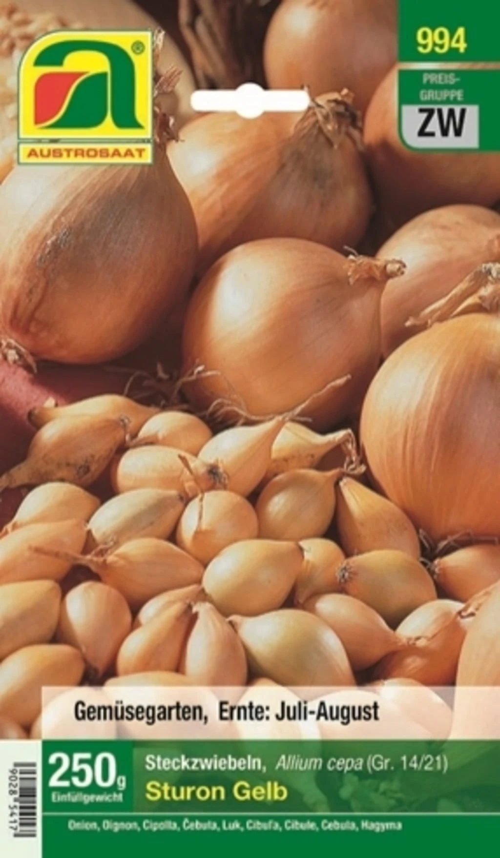Diese wunderbar schmeckenden Zwiebeln wachsen rund und haben eine braune Schale. Sie werden zwischen März und Mai im Abstand von ca. 10 cm, ca. 2-3 cm tief in die Erde gesteckt und können ab Juli geerntet werden.