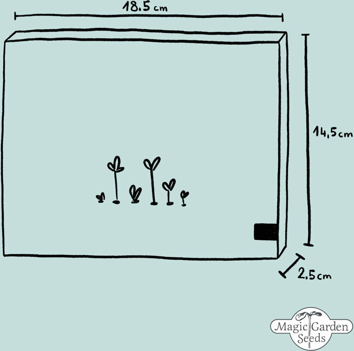 In der hübschen Geschenkverpackung ist pro Sorte je eine Samentüte mit mindestens 10 Samen enthalten. Eine ausführliche Aussaatanleitung (deutsch und englisch) liegt ebenfalls bei.